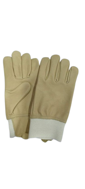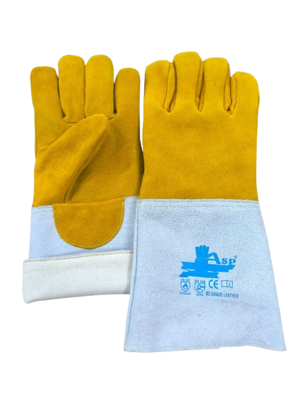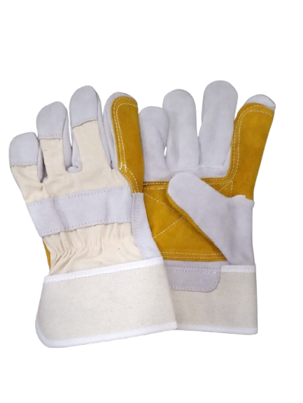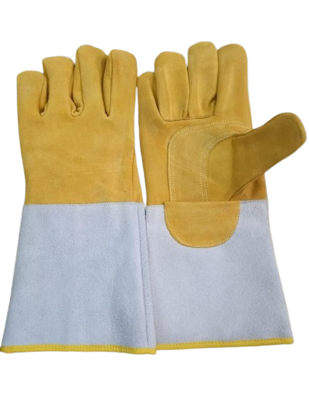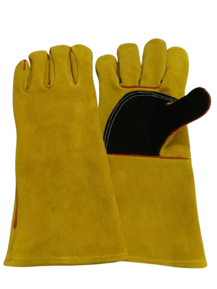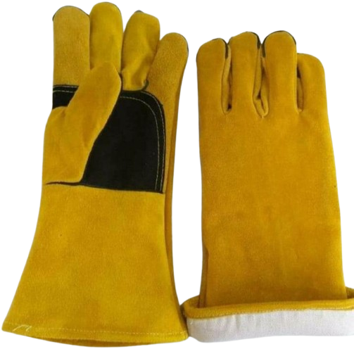 Yellow and White split leather inside: woolen blanket-400GSM Leather thickness: 11/13 Kevlar thumb stiching